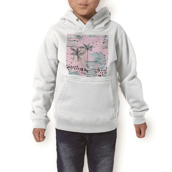 パーカー キッズ ホワイト グレー ブラック デザイン 110 130 150 parker hooded sweatshirt フーディ 白 黒 灰色 子供 男の子 女の子 014083 ヤシの木 リーフ 模様
