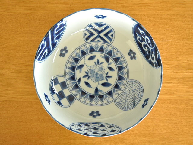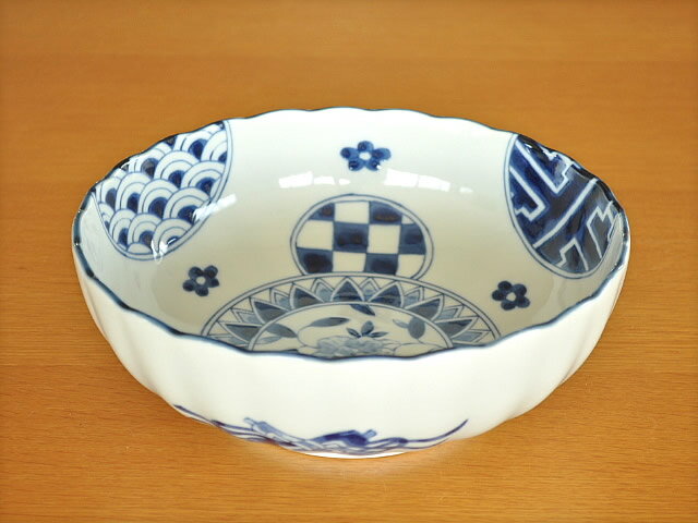 食器 大鉢 おしゃれ 和食器 モダン 美濃焼 ボウル 煮物鉢 サラダボウル アウトレット カフェ風 藍丸紋菊形6.8鉢